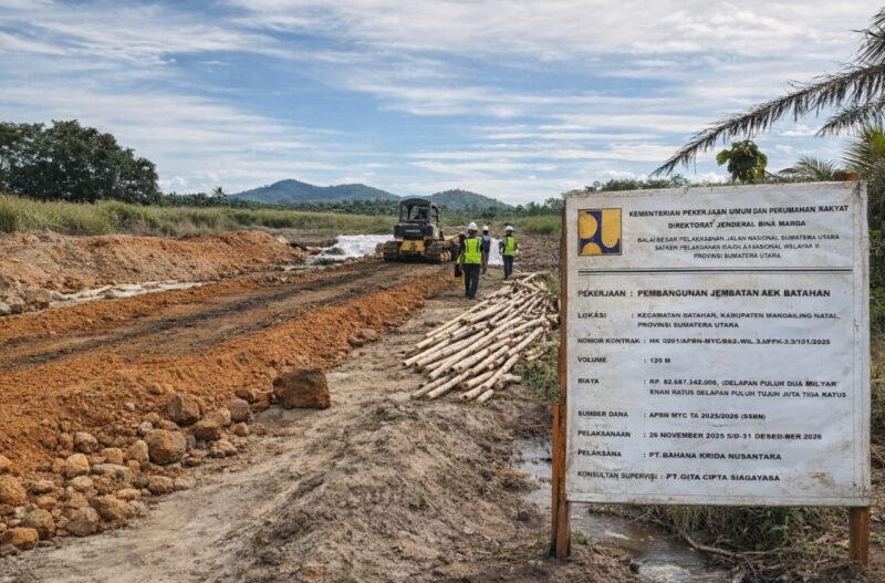 Sumut.newsline.id, Batahan – Dugaan penggunaan material tanah timbun atau tanah urug tanpa izin dalam proyek jembatan Aek Batahan yang dikerjakan oleh PT Bahana Krida Nusantara (BKN) di wilayah Kecamatan Batahan, Kabupaten Mandailing Natal (Madina), menuai sorotan dari sejumlah warga.