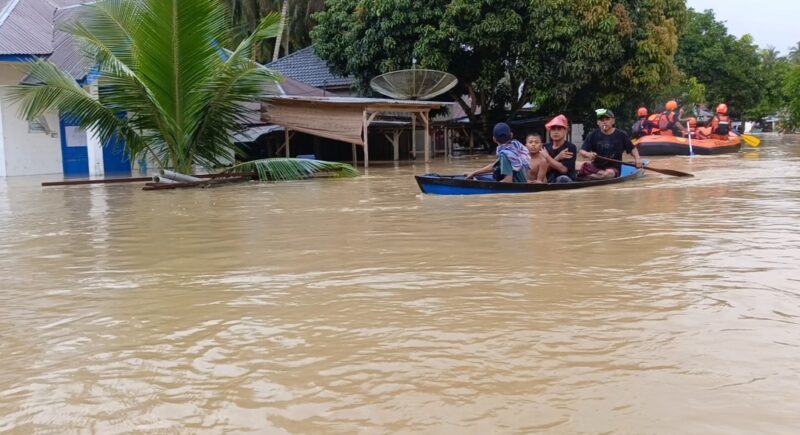 Akibat tingginya debit air membuat petugas BPBD, TNI–Polri, dan relawan dari Mapala STAIN Madina melakukan evakuasi darurat.